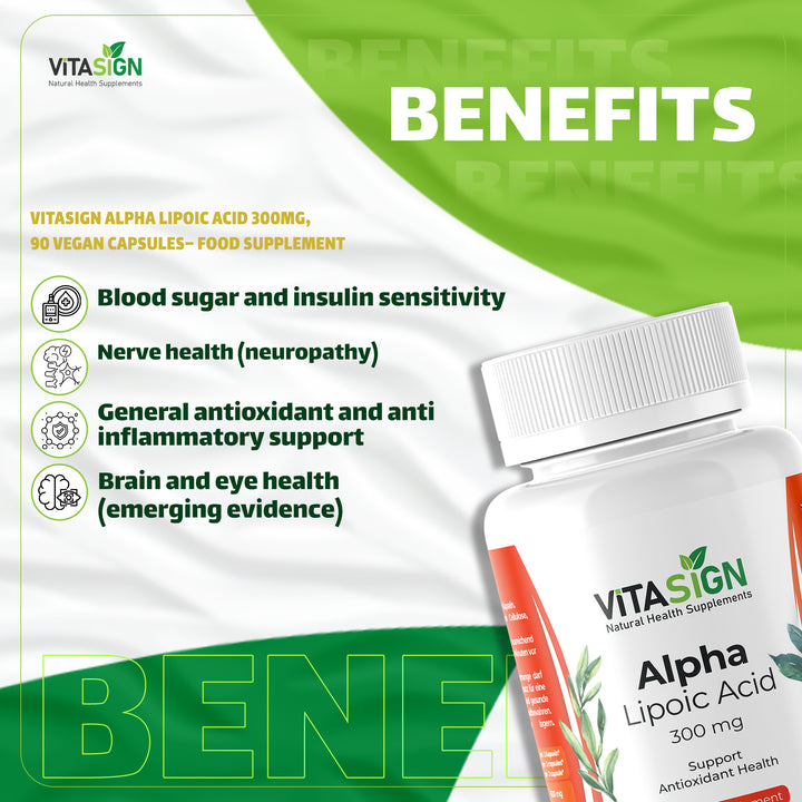 VITASIGN Alpha Lipoic Acid 300mg, 90 Vegan Capsules – Food Supplement