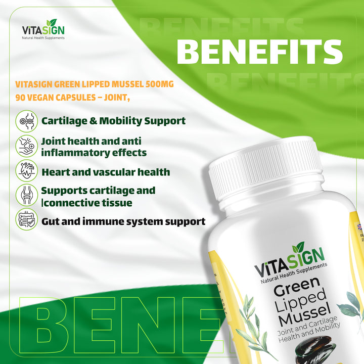 VITASIGN Green Lipped Mussel 500mg, 90 Vegan Capsules – Joint, Cartilage & Mobility Support