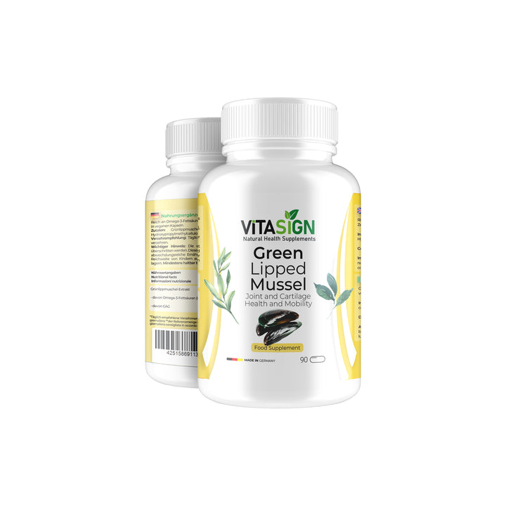 ViTASIGN Green Lipped Mussel provides 500mg of premium green-lipped mussel extract in each vegan capsule, formulated to help support healthy joint and cartilage function and promote mobility.