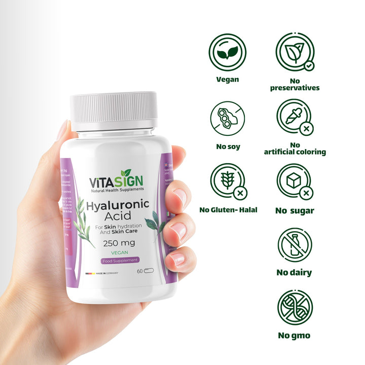 VITASIGN Hyaluronic Acid 250mg, 60 Vegan Capsules – Supports Skin Hydration & Skin Care